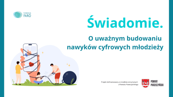 Zgłoś swoją szkołę do projektu, jeśli chcesz pomóc uczniom w: rozwijaniu samoświadomości w zakresie korzystania z technologii, autodiagnozie problematycznych nawyków cyfrowych, wzmacnianiu umiejętności samoregulacji, budowaniu alternatywnych, sprzyjających dobrostanowi sposobów odpoczynku i spędzania czasu wolnego Projekt skierowany jest do uczniów szkół średnich z terenu powiatu piaseczyńskiego. Zadzwoń: +48722145689 Napisz: kontakt@fundacjafaro.org Co uzyska szkoła w ramach udziału…